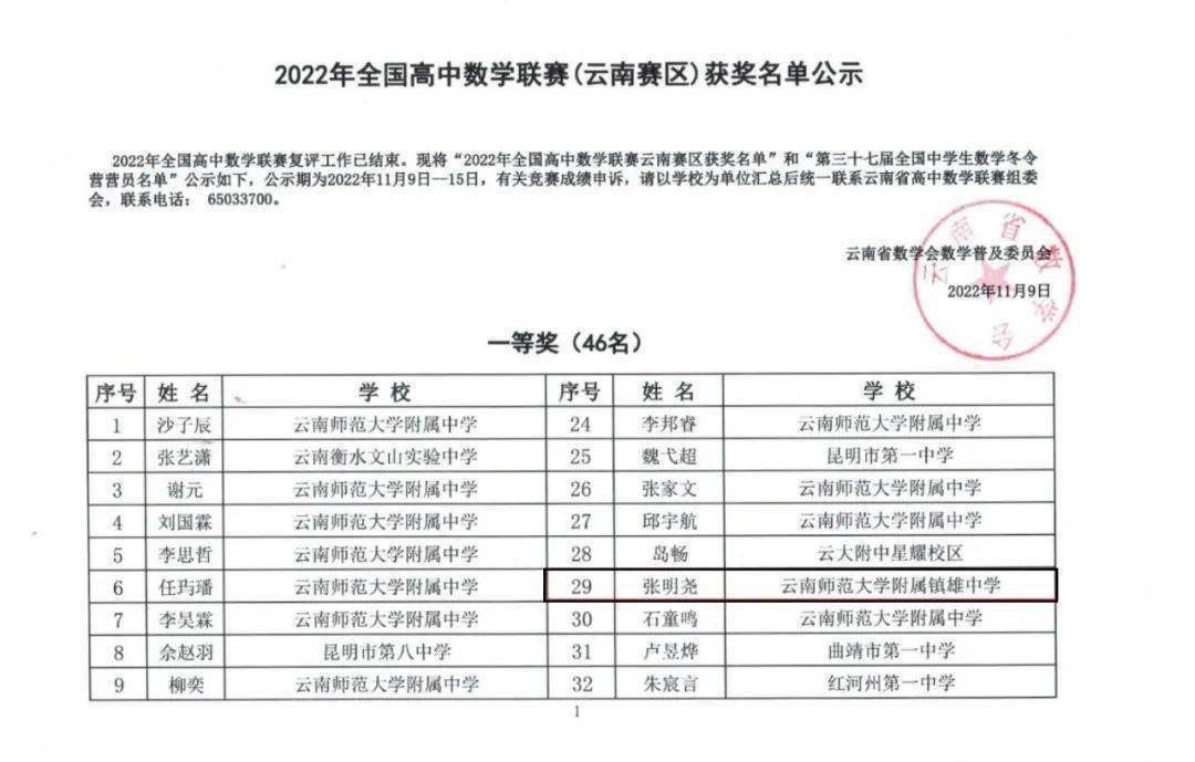 " 2022年全国中学生数学奥林匹克竞赛(预赛)暨2022年高中数学联赛复评工作已结束。经过认真复评,中国数学会确定了2022年全国中学生数学奥林匹克竞赛(预赛)暨2022年全国高中数学联赛各赛区一等奖名单(部分省份)..