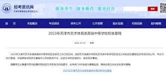 " 2023年天津市艺术体育类高级中等学校招生报名工作已经启动。现将艺术类高中学校和艺体类中职学校的招生计划和招生章程在招考资讯网公布,考生可自行查阅,并按照各学校招生章程中公布的联系方式,向招生学校咨询招..