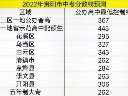 " 2022年贵阳中考分数线公布,详细如下: 据介绍,市招委会分招生区域,按照普通高中第一、第二、第三批次各批次学校招生计划总数的110%,划定各批次最低控制线;根据招生计划及学生成绩划定五年制大专最低控制线;..