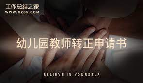 幼儿教师转正申请书 幼儿教师转正申请书 尊敬的园长和各位领导: 您好! 我是 XXX ,于 XXXX年XX月XX日 加入 XX幼儿园 ,担任幼儿教师一职。现试用期已满,特此申请转为正式员工。以下是我在试用期内的工作总结及转..