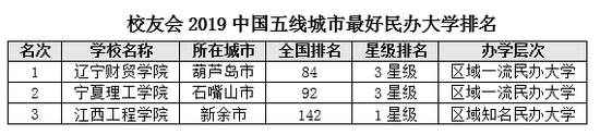 辽宁财贸学院位列2019中国五线城市最好民办大学排名榜首,江西工程学院居第3