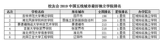 吉林师范大学博达学院名列2019中国五线城市最好独立学院排名首位,湖北民族学院科技学院第2